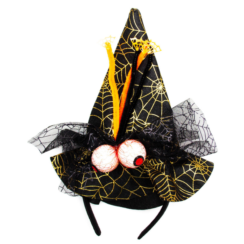 Карнавальний капелюх-обідок відьми Очі, чорний, жовтий, фетр (513283-3)