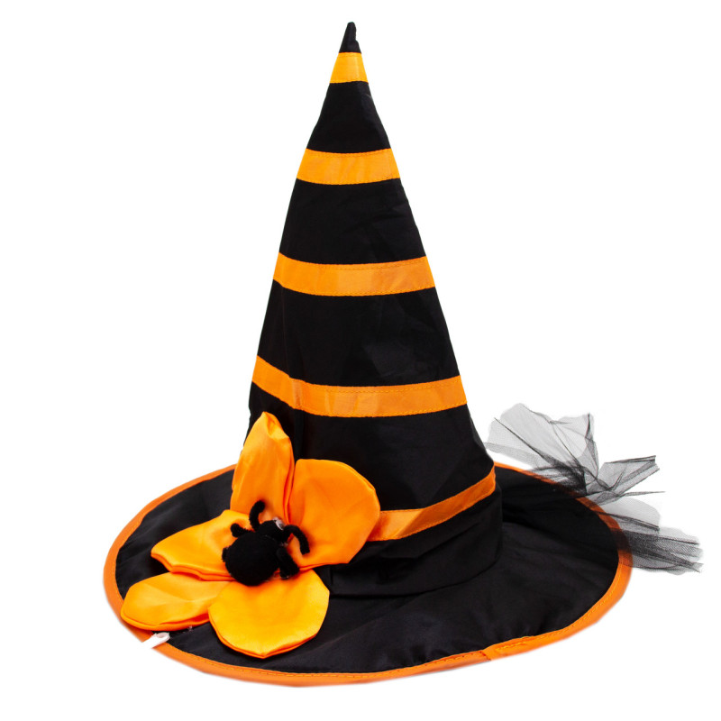 Карнавальний ковпак відьми з павуком, 54-55 см, поліестер, пластик, чорно-помаранчева (462711)