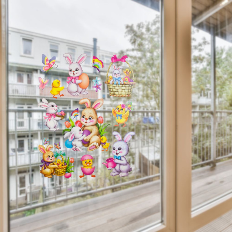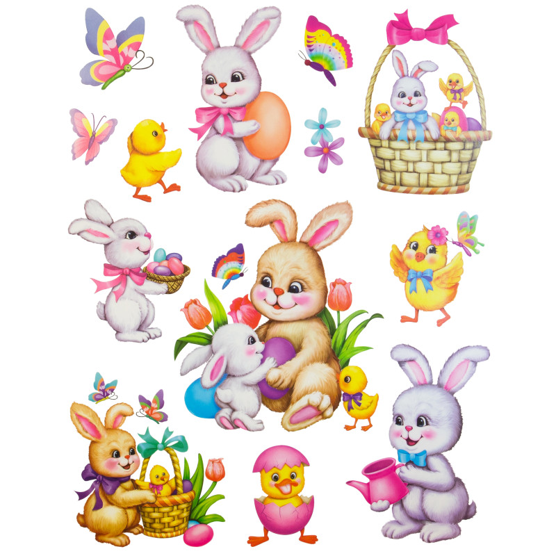 Лист з декоративними пасхальними наклейками на вікно, зайці, 30x42 см, ПВХ, папір (070281) для декору та інтер'єру (070281)