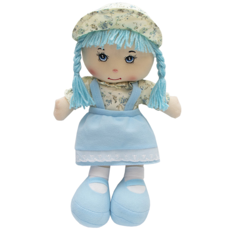 М'яка іграшка лялька з вишитим обличчям, 36 см, блакитна сукня (860845)