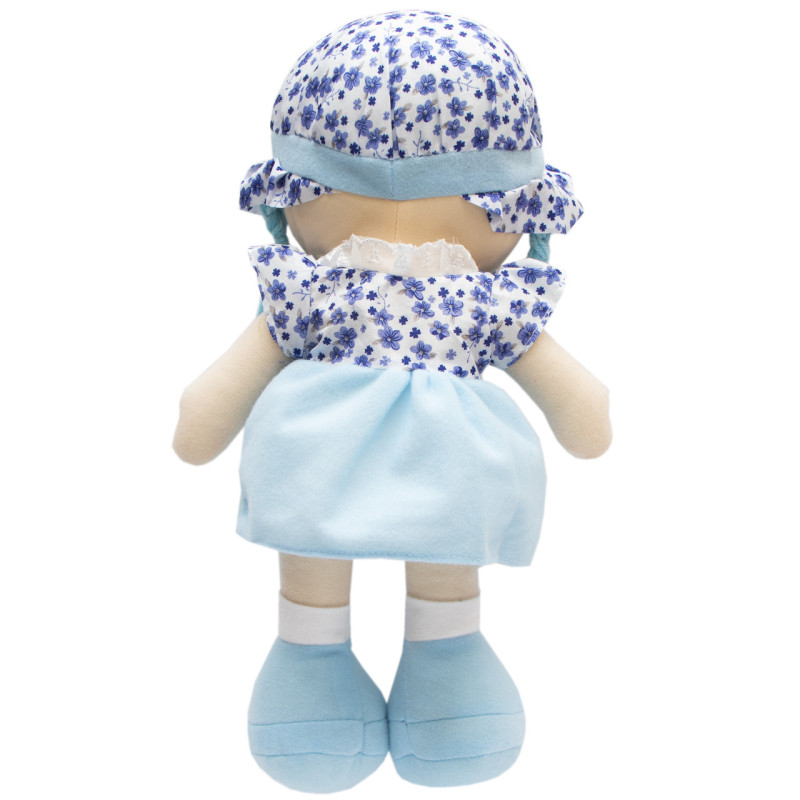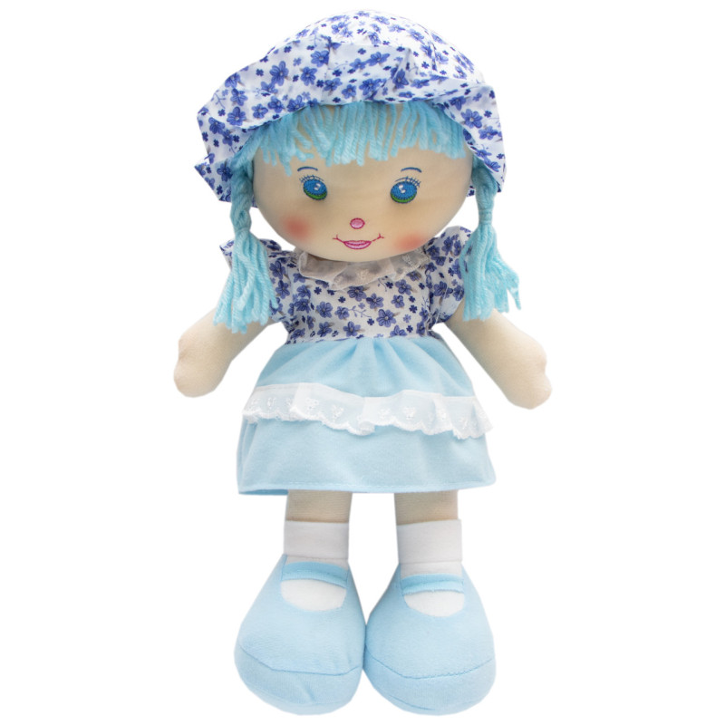 М'яка іграшка лялька з вишитим обличчям, 36 см, блакитна сукня (861019)