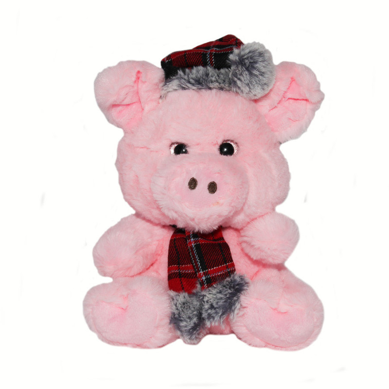 М'яка іграшка - порося з червоними шапкою та шарфиком, 21 см, рожевий, поліестер (C1713620M-1)