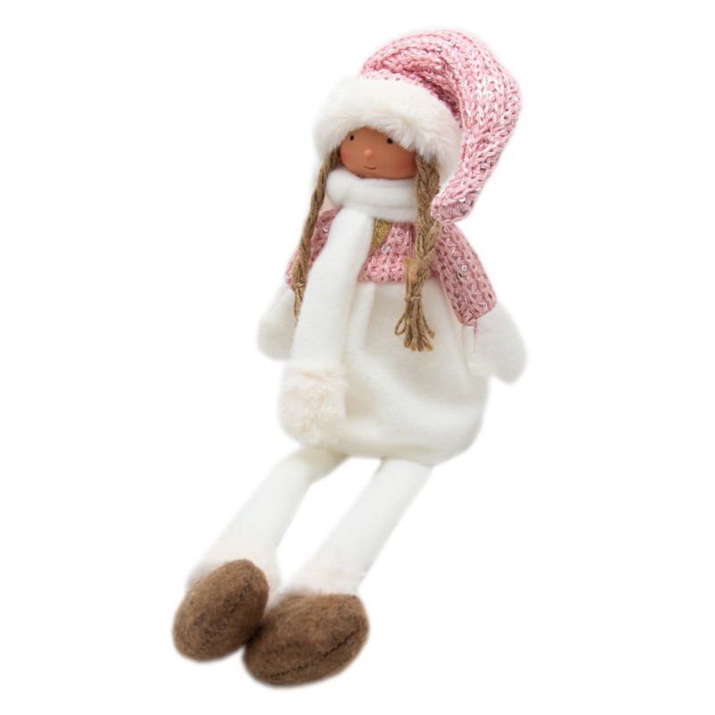 М'яка новорічна фігурка Дівчинка з висячими ніжками, 12x10x52 см, рожевий, текстиль (460310)