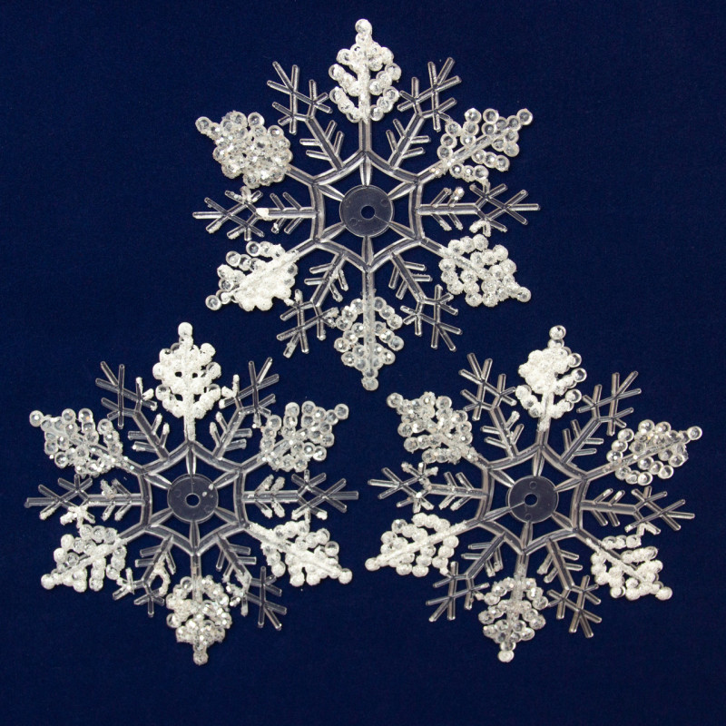 Набір ялинкових іграшок - акрилові сніжинки, 3 шт, 10,5 см, сріблястий, акрил (200602)