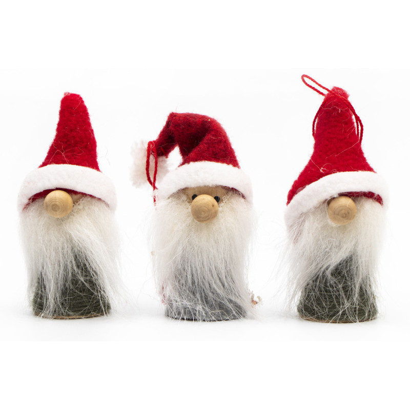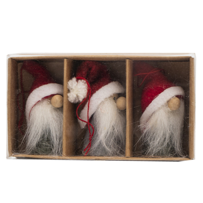 Набір ялинкових іграшок - Санта (Дід Мороз), 3 шт, 7 см, білий, червоний, дерево (480197)