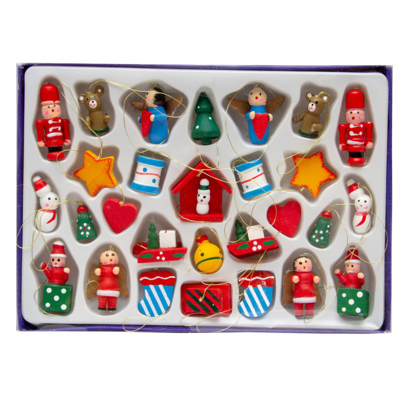 Набір ялинкових іграшок - дерев'яні фігурки, 28 шт, 21x15 см, різнокольоровий, дерево (060122)