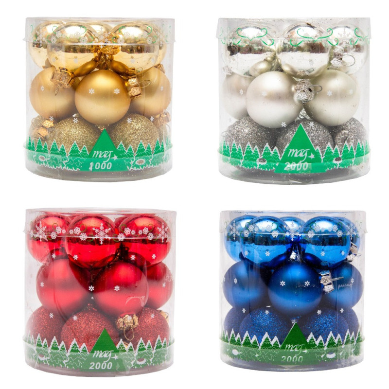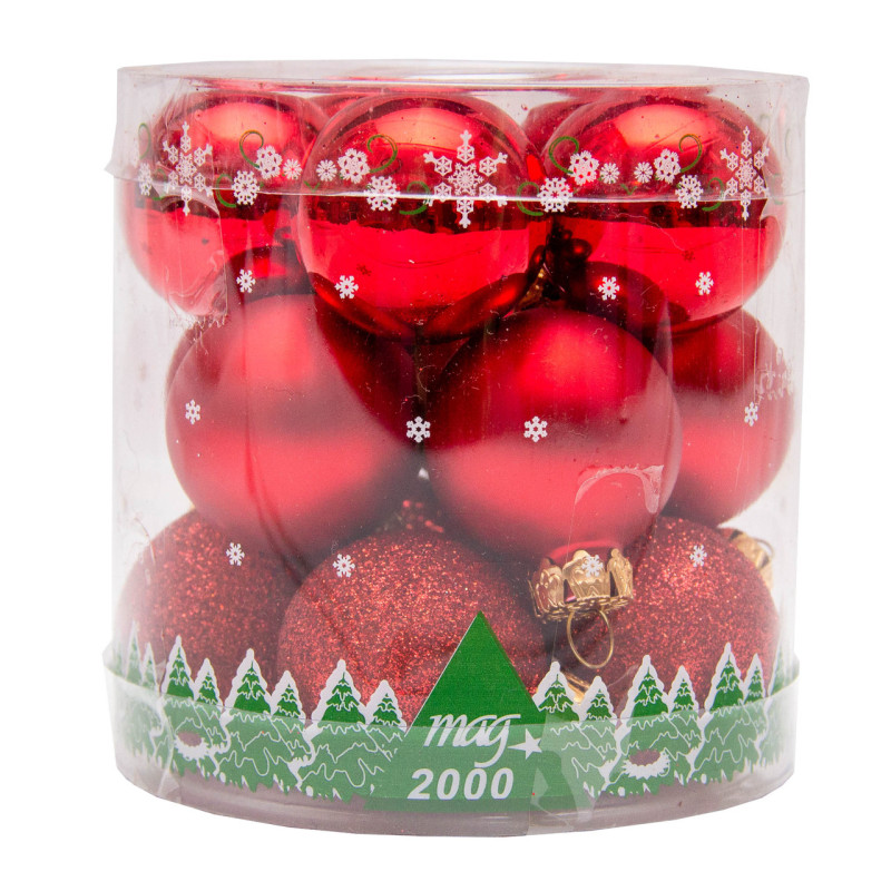 Набір ялинкових іграшок - міні-кулі, 15 шт, D3 см, червоний, мікс, скло (390014-3)