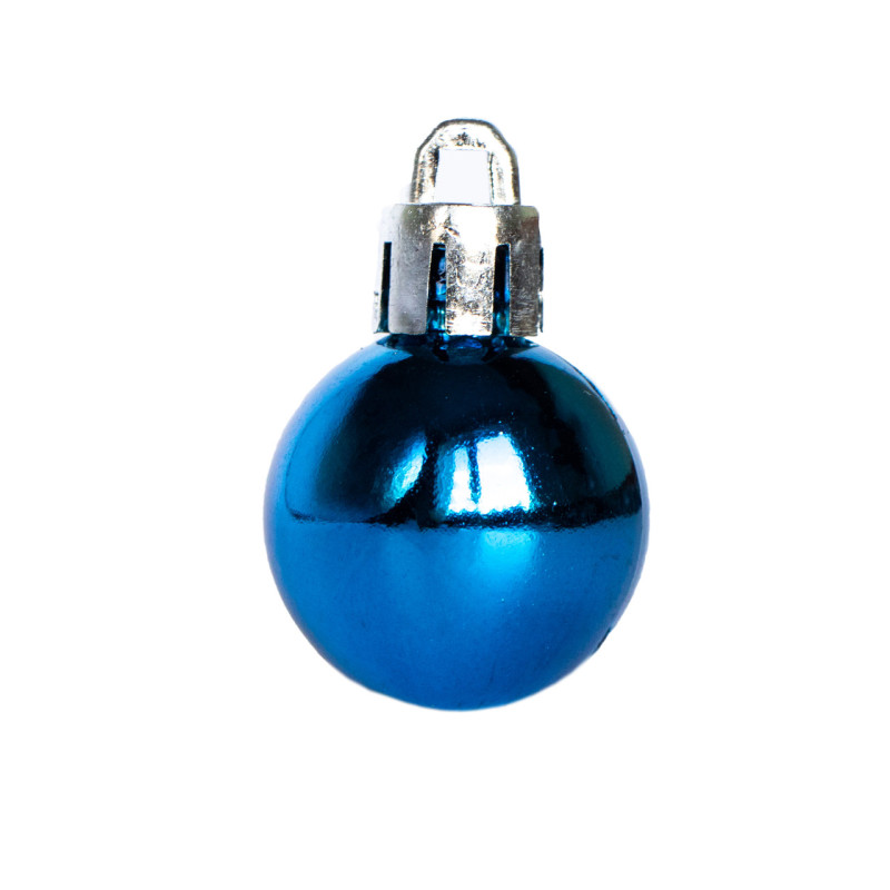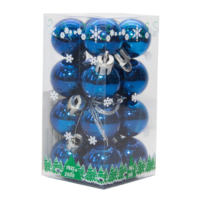 Набір ялинкових іграшок - міні-кулі, 16 шт, D2,5 см, синій, глянець, пластик (890605)