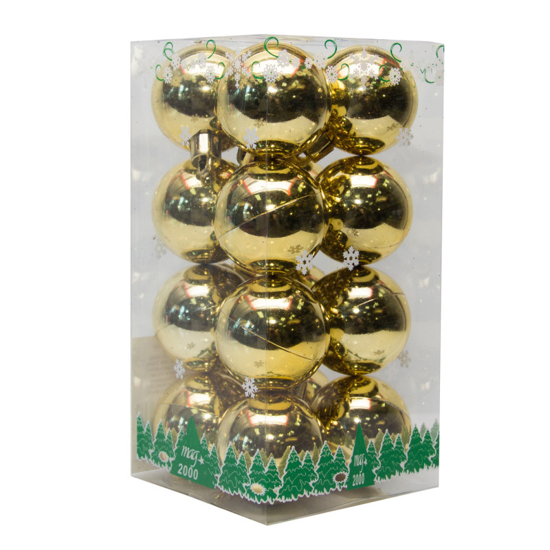 Набір ялинкових іграшок - міні-кулі, 16 шт, D4 см, золотистий, глянець, пластик (890667)