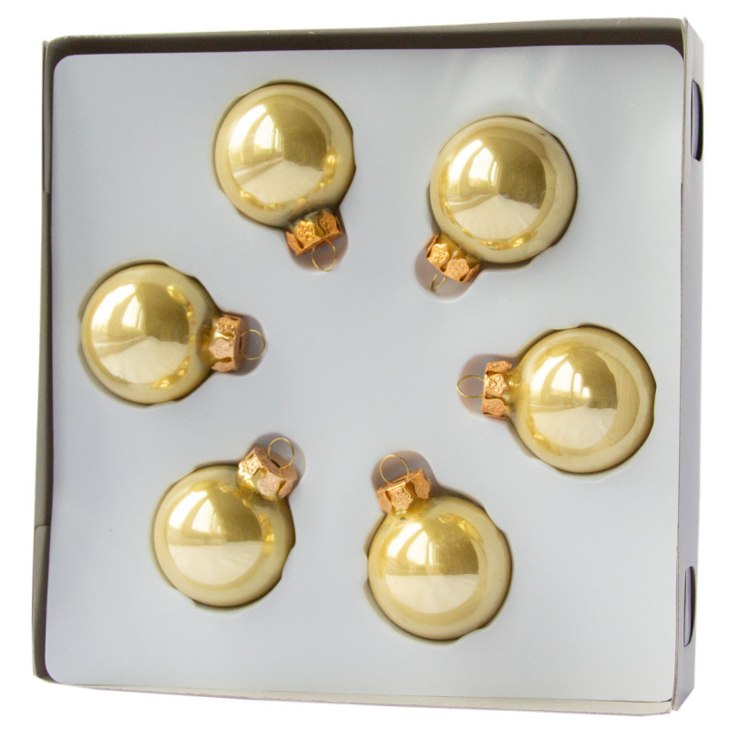 Набір ялинкових іграшок - міні-кулі, 6 шт, D4 см, золотистий, глянець, скло (390663-2)