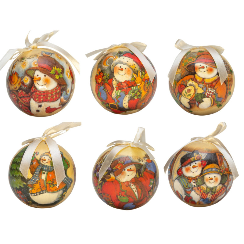 Набір ялинкових іграшок - новорічні кулі Сніговик, 6шт, D7,5 см, різнокольоровий, пінопласт (420056-3)