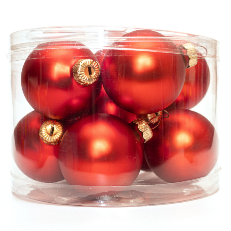 Набір ялинкових іграшок - кулі, 11 шт, D6 см, червоний, матовий, скло (390120-14)