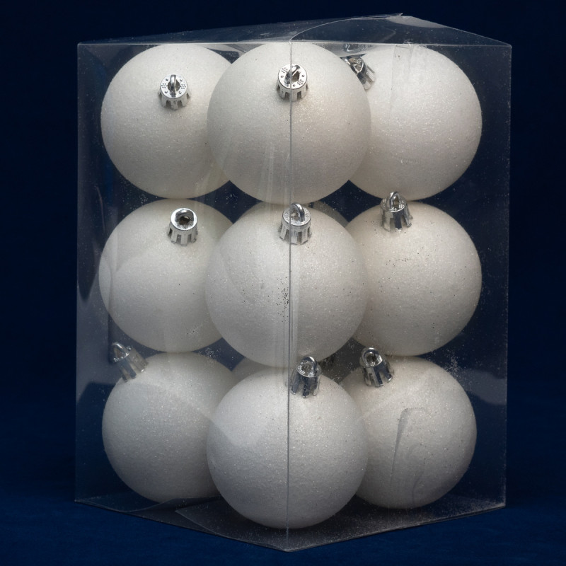 Набір ялинкових іграшок - кулі, 12 шт, D6 см, білий, гліттер, пластик (892173)