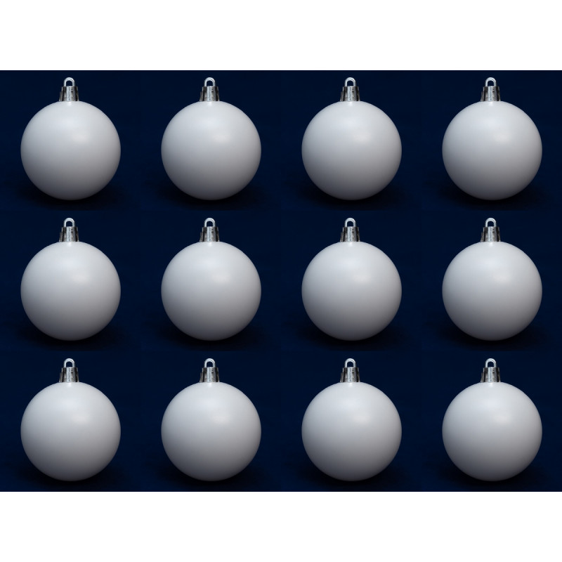 Набір ялинкових іграшок - кулі, 12 шт, D6 см, білий, матовий, пластик (892029)