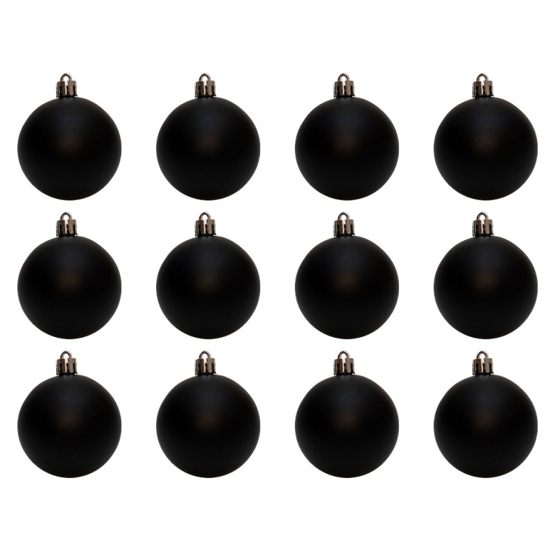 Набір ялинкових іграшок - кулі, 12 шт, D6 см, чорний, матовий, пластик (892050)