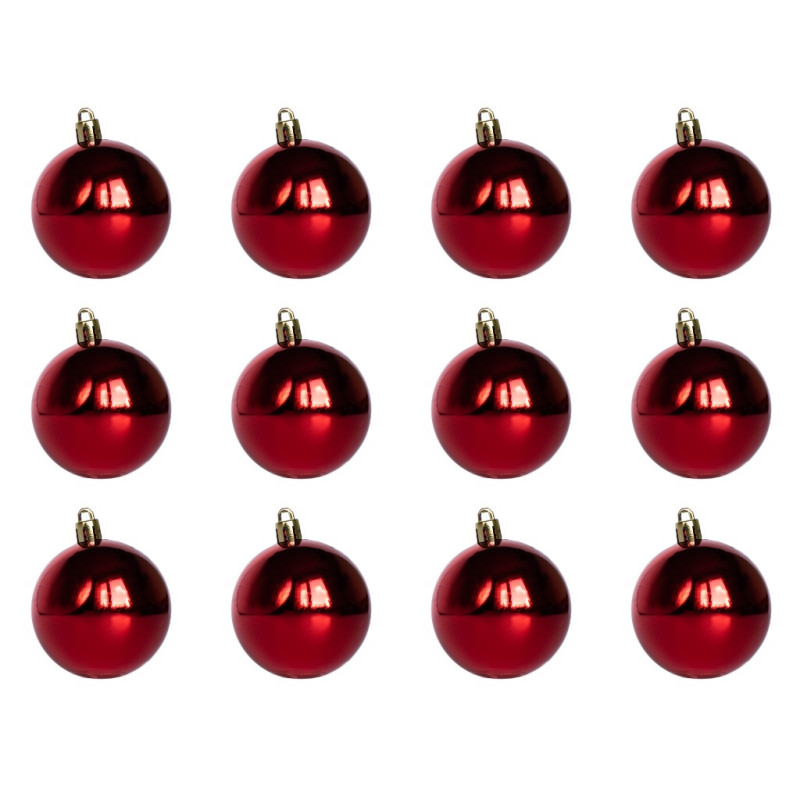 Набір ялинкових іграшок - кулі, 12 шт, D6 см, червоний, глянець, пластик (890759)