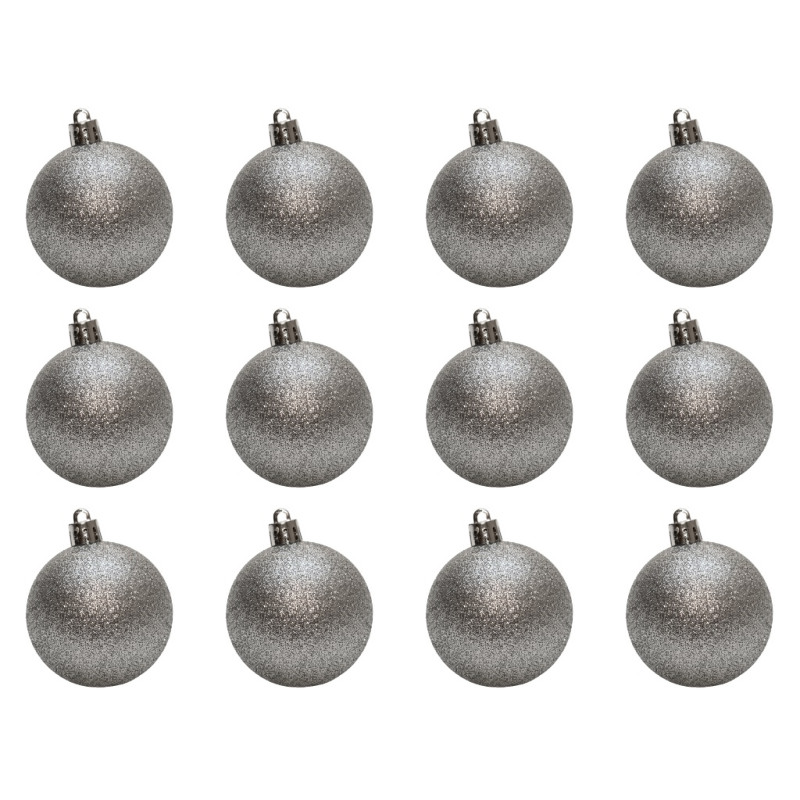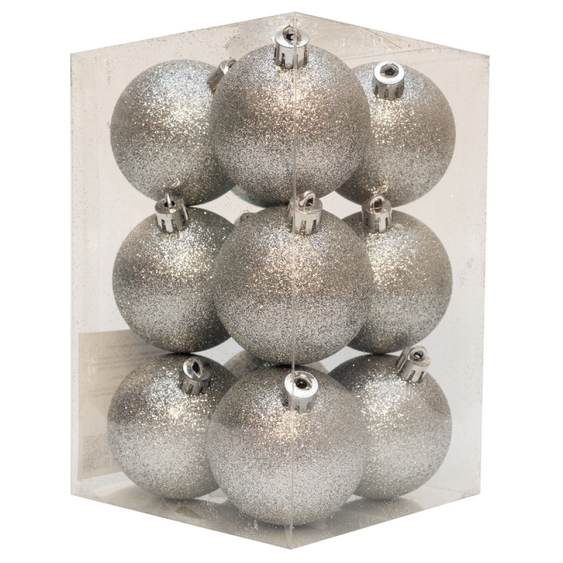 Набір ялинкових іграшок - кулі, 12 шт, D6 см, сріблястий, гліттер, пластик (892135)