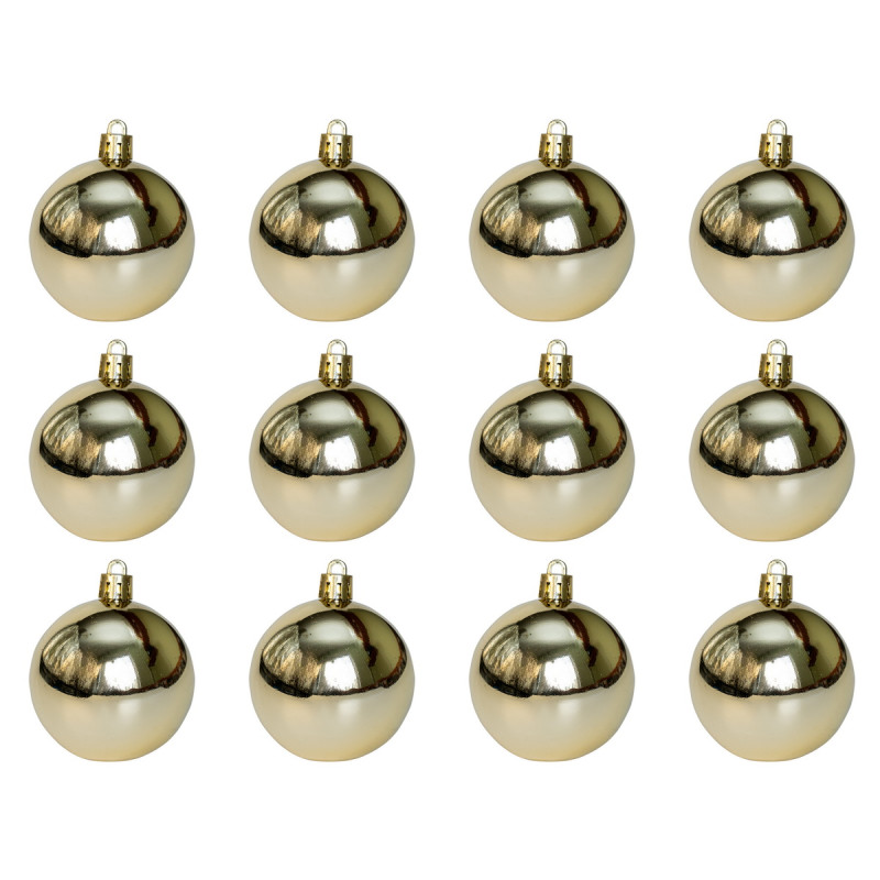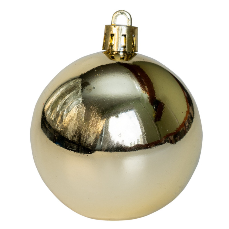 Набір ялинкових іграшок - кулі, 12 шт, D6 см, шампань, глянець, пластик (892081)