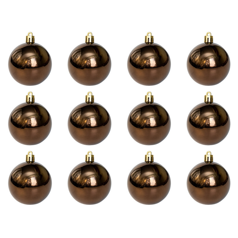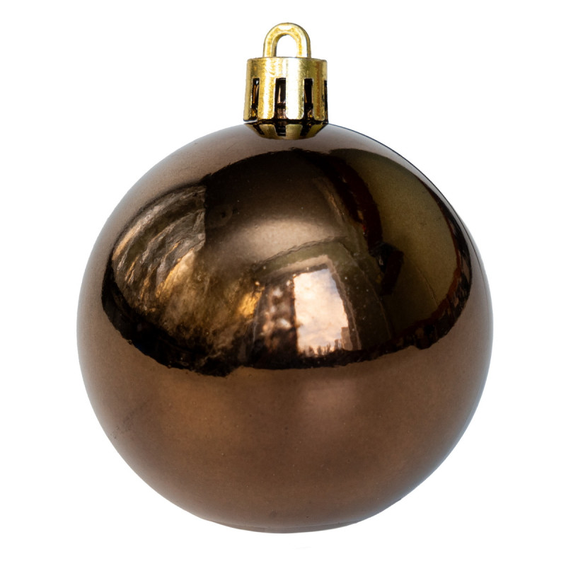 Набір ялинкових іграшок - кулі, 12 шт, D6 см, шоколадний, глянець, пластик (892074)