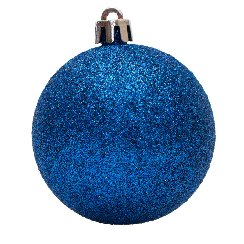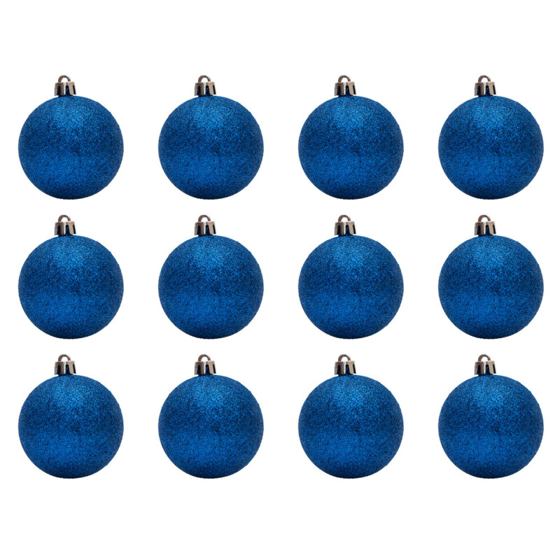 Набір ялинкових іграшок - кулі, 12 шт, D6 см, синій, гліттер, пластик (251055)