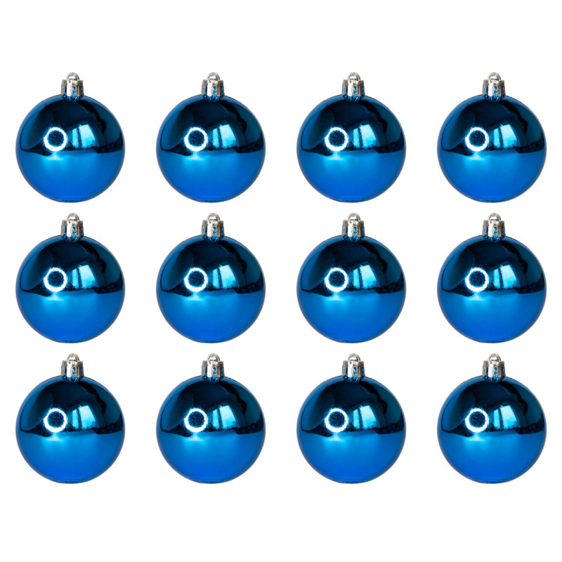 Набір ялинкових іграшок - кулі, 12 шт, D6 см, синій, глянець, пластик (251048)