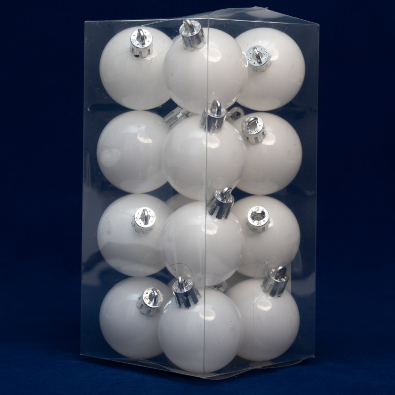 Набір ялинкових іграшок - кулі, 16 шт, D4 см, білий, глянець, пластик (891947)