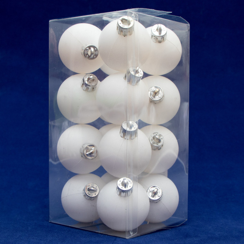 Набір ялинкових іграшок - кулі, 16 шт, D4 см, білий, матовий, пластик (250942)