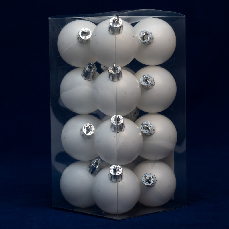 Набір ялинкових іграшок - кулі, 16 шт, D4 см, білий, матовий, пластик (891923)