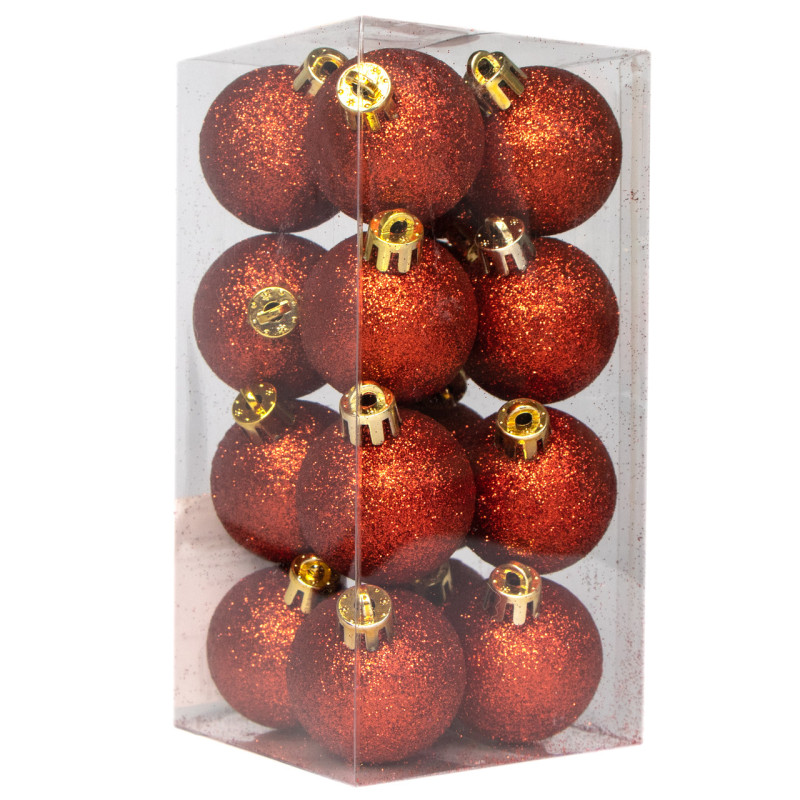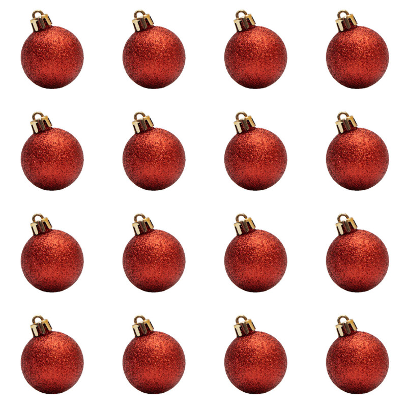 Набір ялинкових іграшок - кулі, 16 шт, D4 см, червоний, гліттер, пластик (250898)