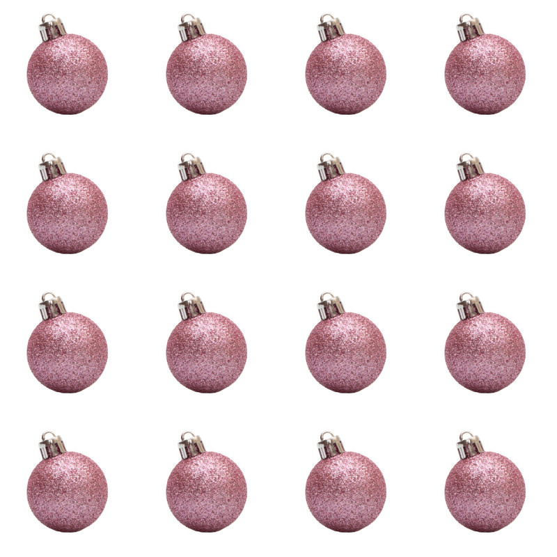 Набір ялинкових іграшок - кулі, 16 шт, D4 см, рожевий, гліттер, пластик (251017)
