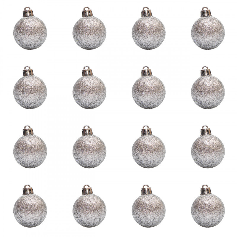 Набір ялинкових іграшок - кулі, 16 шт, D4 см, сріблястий, гліттер, пластик (250843)