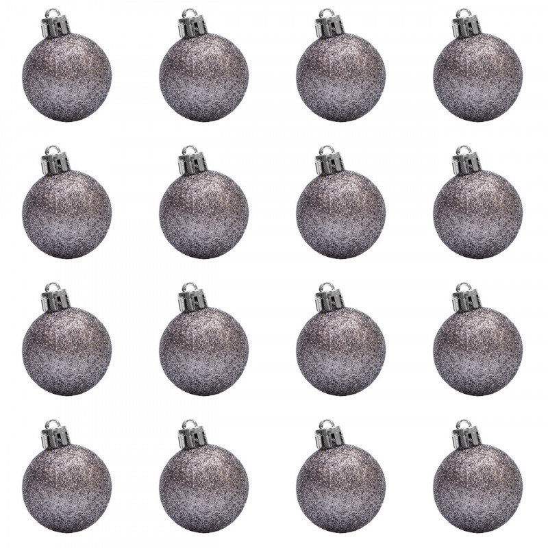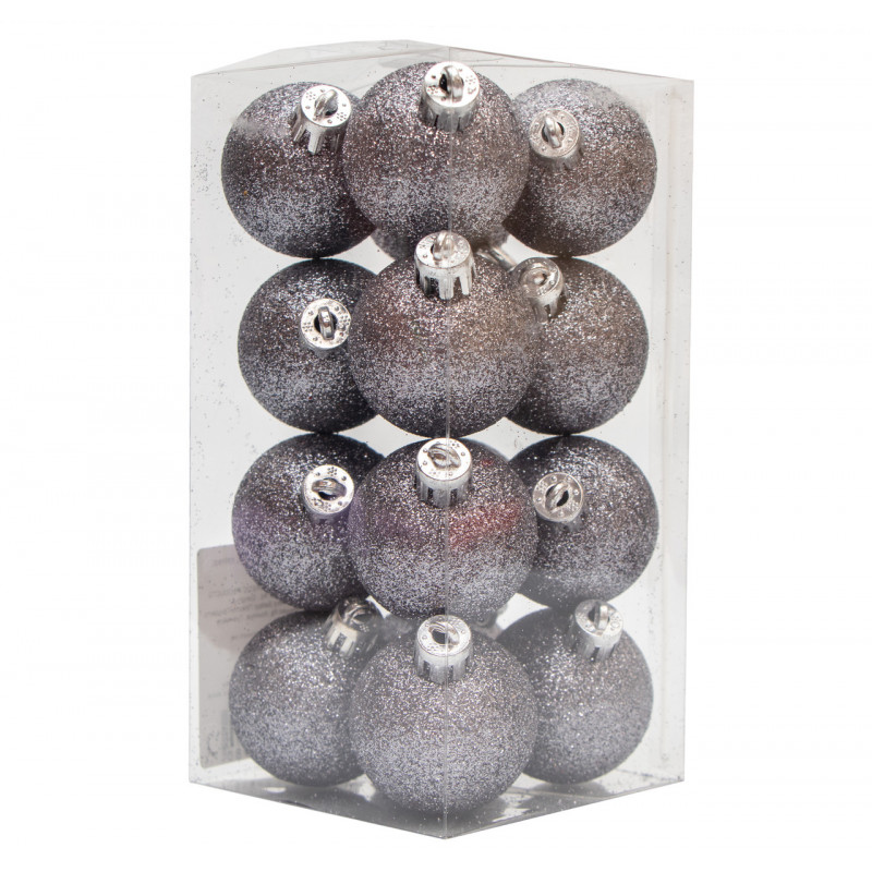 Набір ялинкових іграшок - кулі, 16 шт, D4 см, сірий, гліттер, пластик (250980)