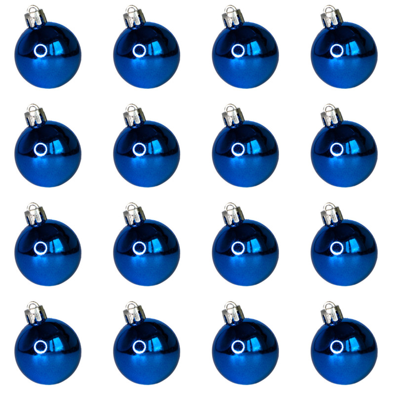 Набір ялинкових іграшок - кулі, 16 шт, D4 см, синій, глянець, пластик (250911)