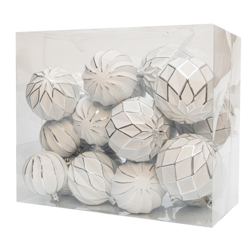 Набір ялинкових іграшок - кулі, 21 шт, D6-8 см, білий, сріблястий, матовий, пластик (892616)