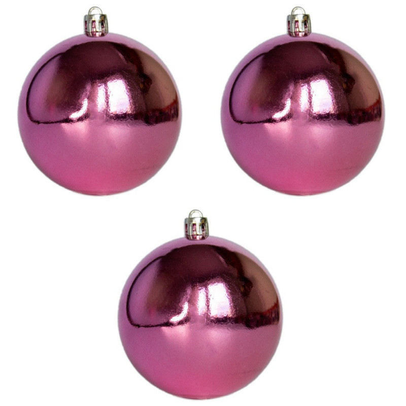 Набір ялинкових іграшок - кулі, 3 шт, D8 см, глянець, рожевий, пластик (251406)