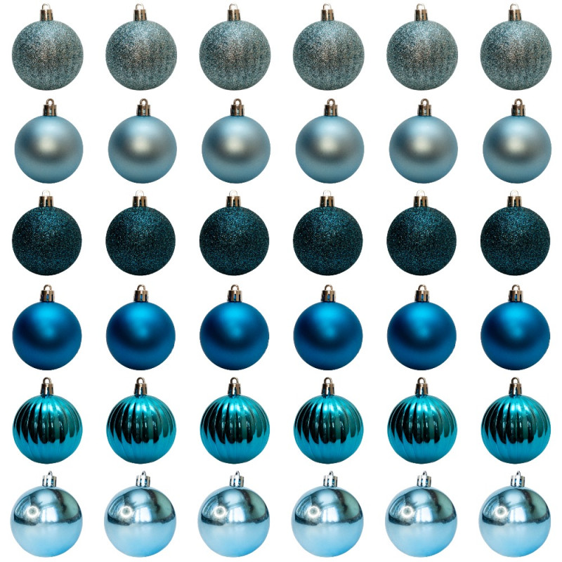 Набір ялинкових іграшок - кулі, 36 шт, D6 см, бірюзовий, мікс, пластик (892630)
