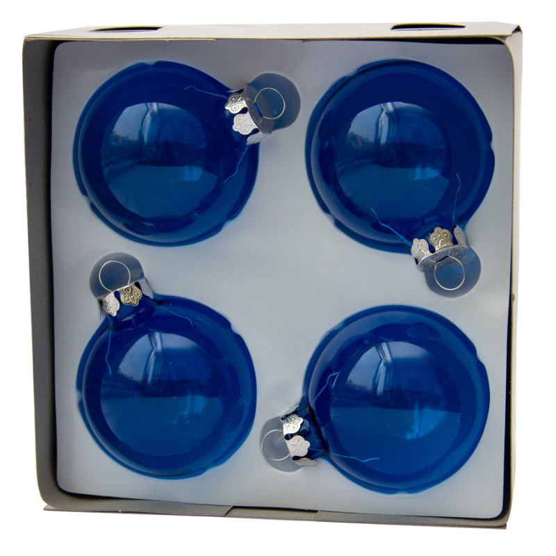 Набір ялинкових іграшок - кулі, 4 шт, D6 см, синій, глянець, скло (390601-4)