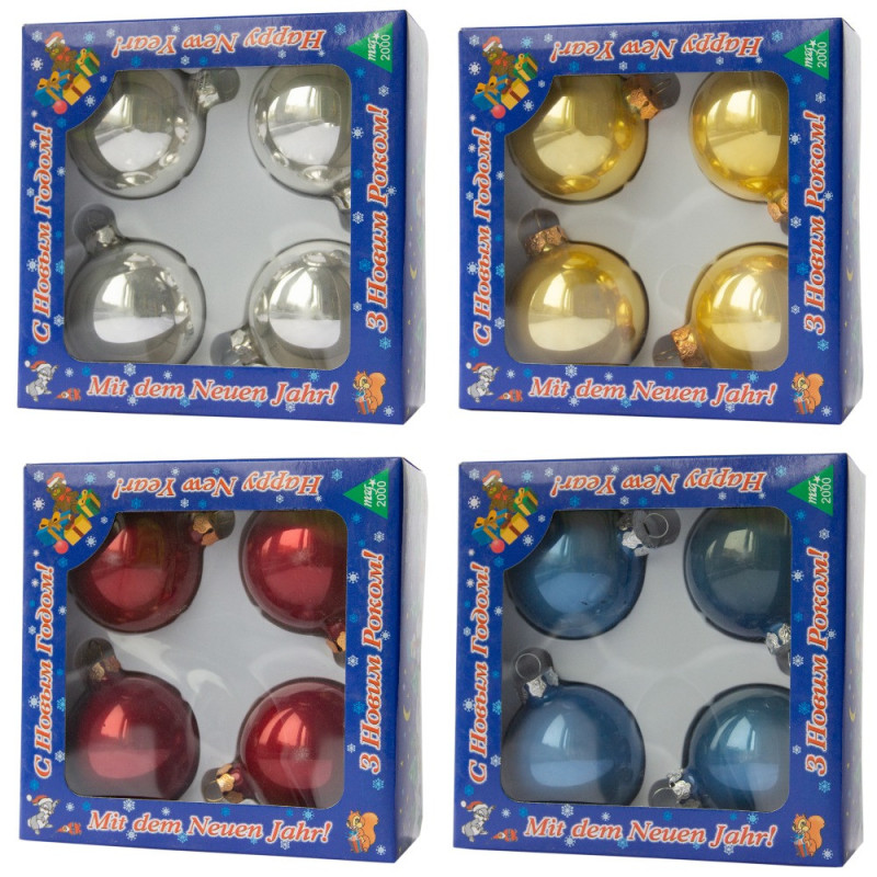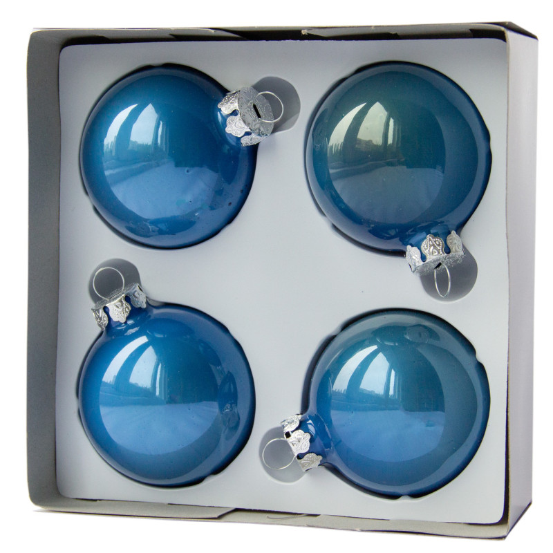 Набір ялинкових іграшок - кулі, 4 шт, D6 см, синій, глянець, скло (390687-4)