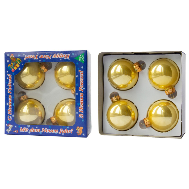 Набір ялинкових іграшок - кулі, 4 шт, D6 см, золотистий, глянець, скло (390687-2)