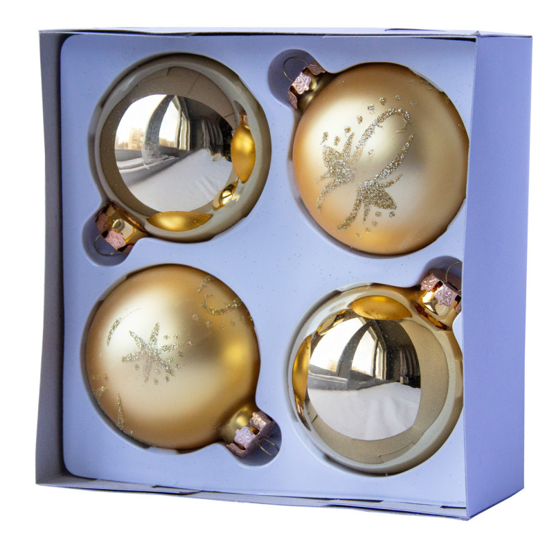 Набір ялинкових іграшок - кулі, 4 шт, D7 см, золотистий, мікс, в сніжинку, скло (390335-7)