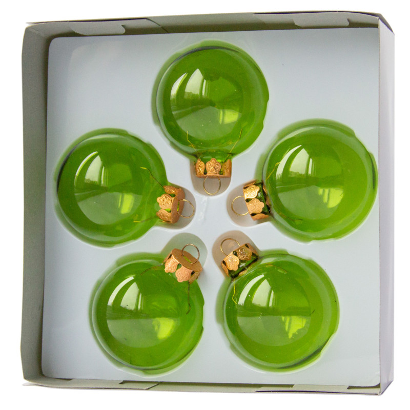 Набір ялинкових іграшок - кулі, 5 шт, D5 см, зелений, скло (390595-4)
