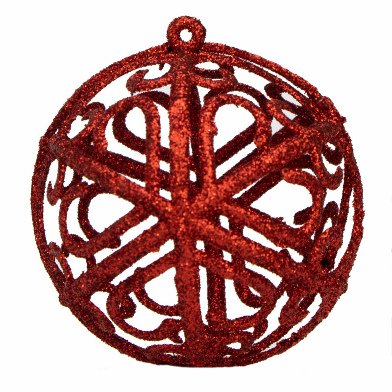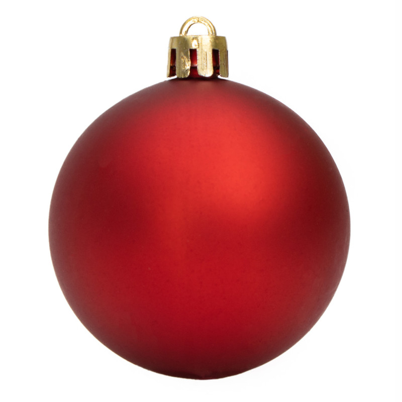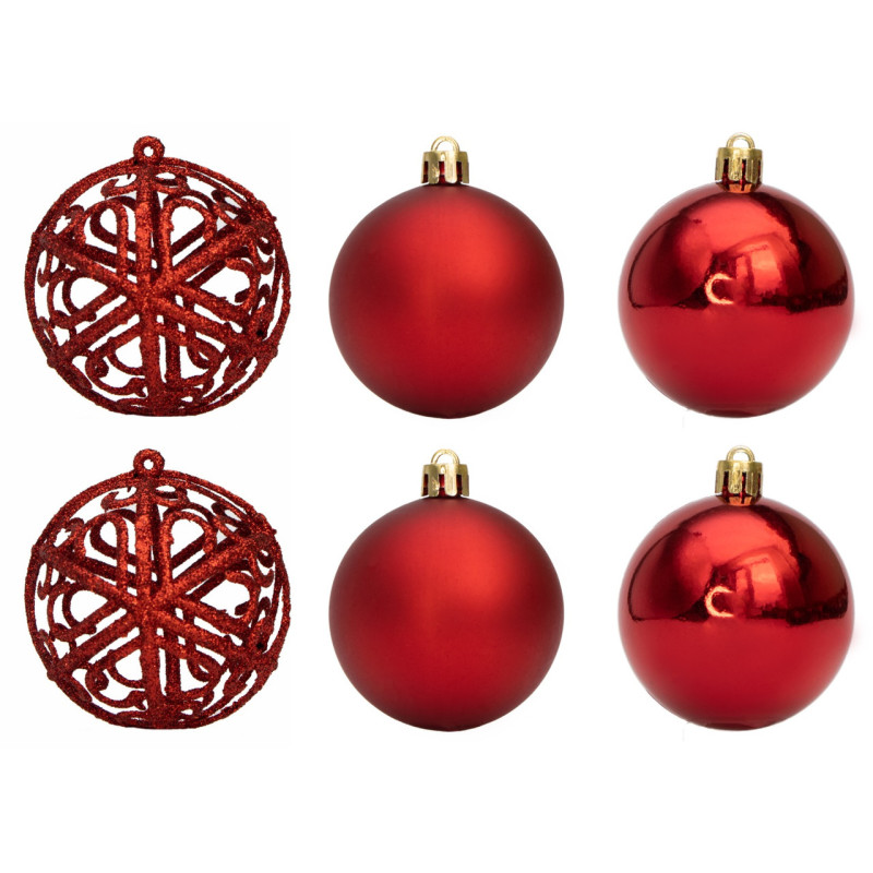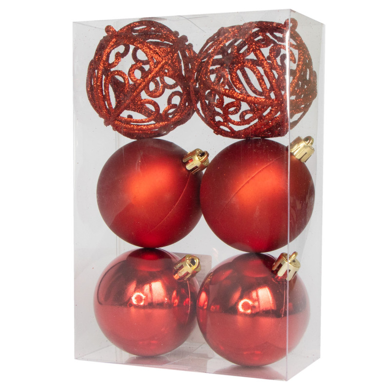 Набір ялинкових іграшок - кулі, 6 шт, D6 см, червоний, матовий, глянець, гліттер, пластик (251727)