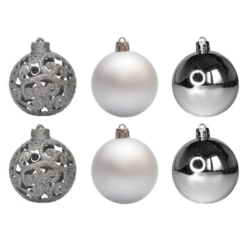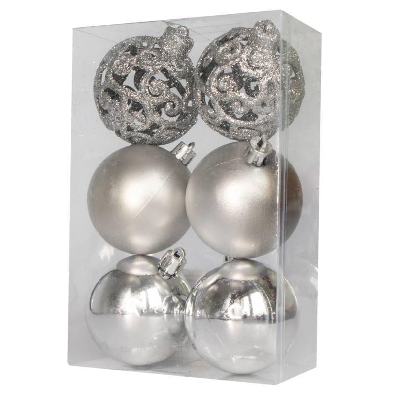 Набір ялинкових іграшок - кулі, 6 шт, D6 см, сріблястий, пластик (251703)