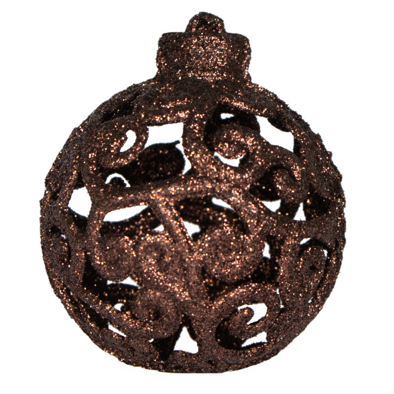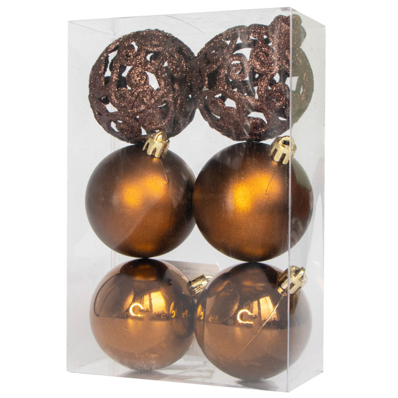 Набір ялинкових іграшок - кулі, 6 шт, D6 см, шоколадний, матовий, глянець, гліттер, пластик (251741)