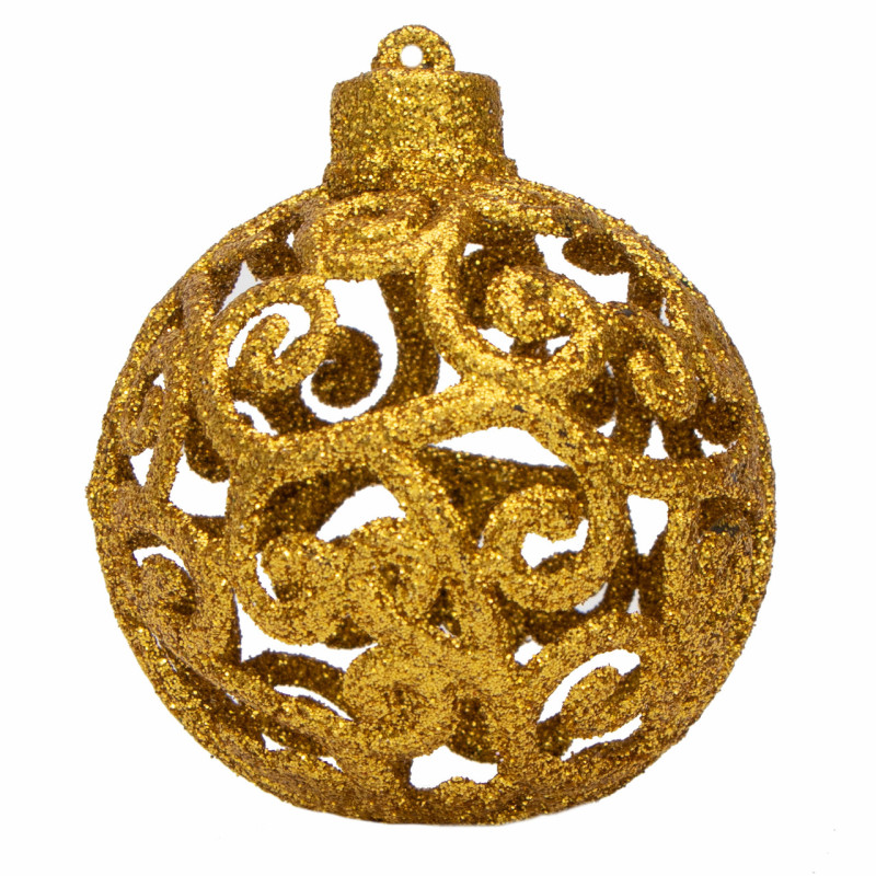 Набір ялинкових іграшок - кулі, 6 шт, D6 см, золотистий, матовий, глянець, гліттер, пластик (251710)
