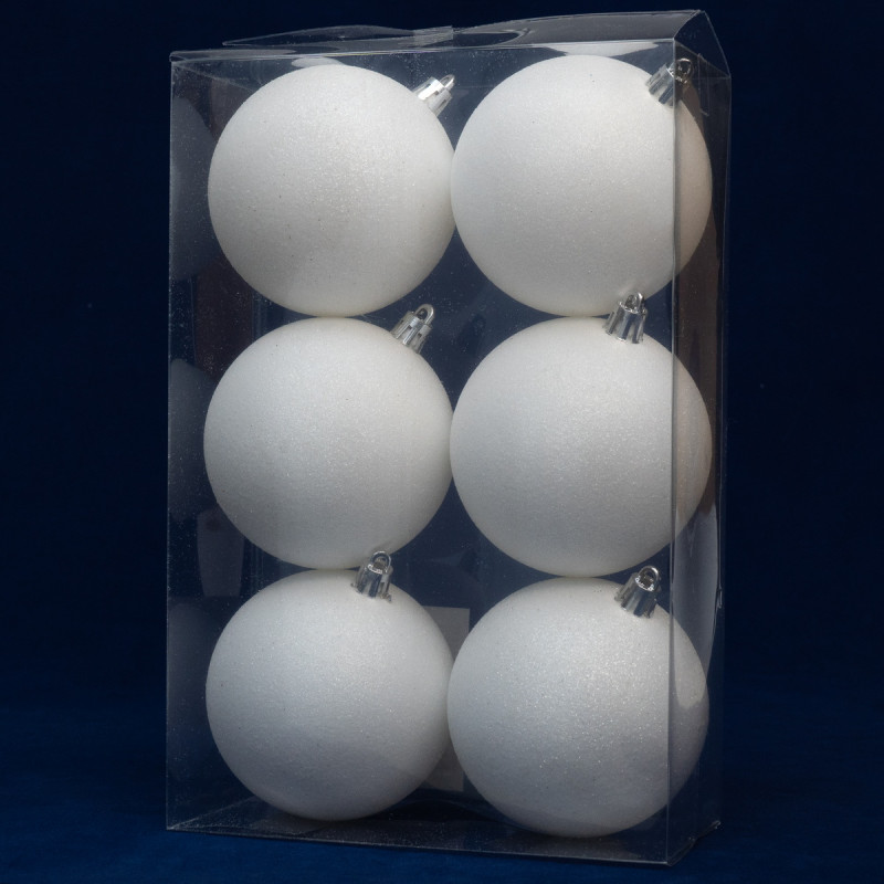 Набір ялинкових іграшок - кулі, 6 шт, D8 см, білий, гліттер, пластик (892357)
