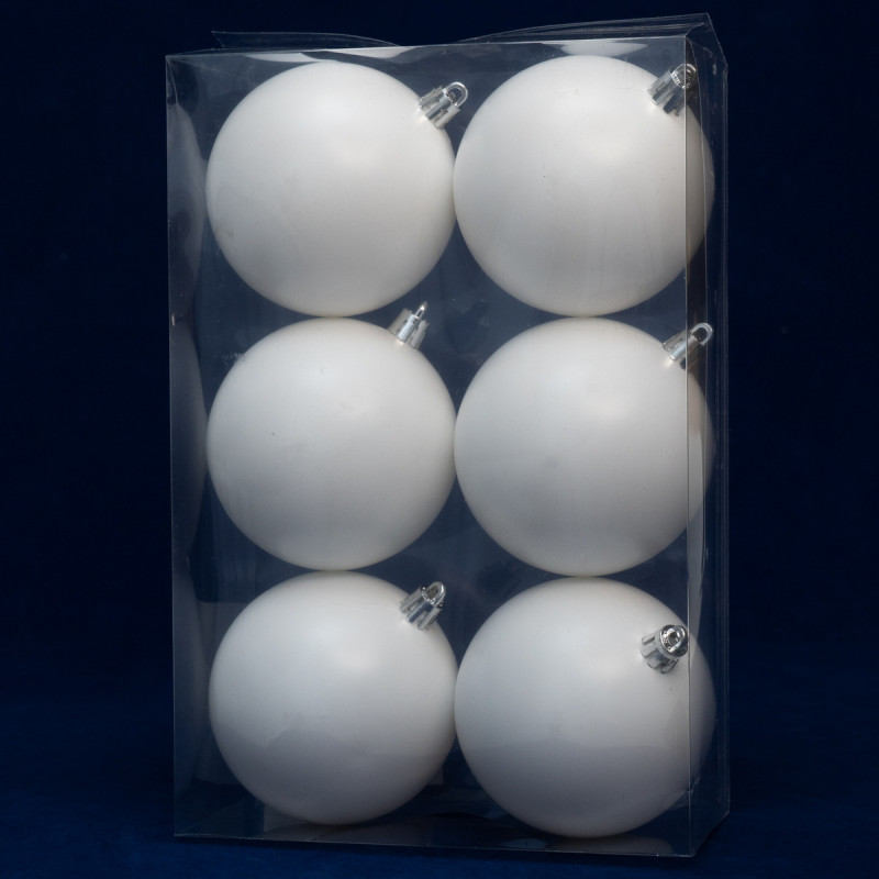 Набір ялинкових іграшок - кулі, 6 шт, D8 см, білий, матовий, пластик (892210)