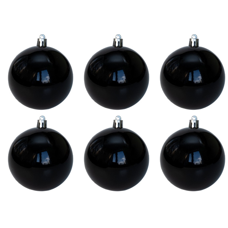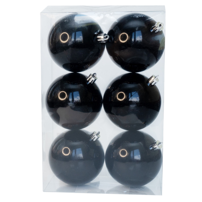 Набір ялинкових іграшок - кулі, 6 шт, D8 см, чорний, глянець, пластик (892289)