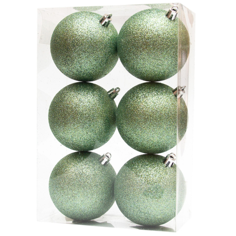Набір ялинкових іграшок - кулі, 6 шт, D8 см, м'ятний, гліттер, пластик (891305)