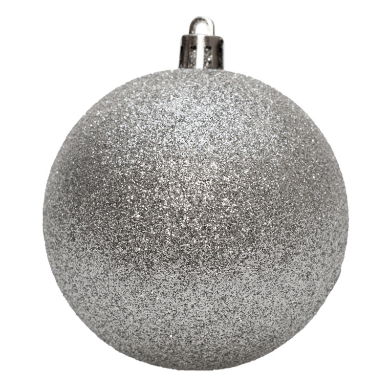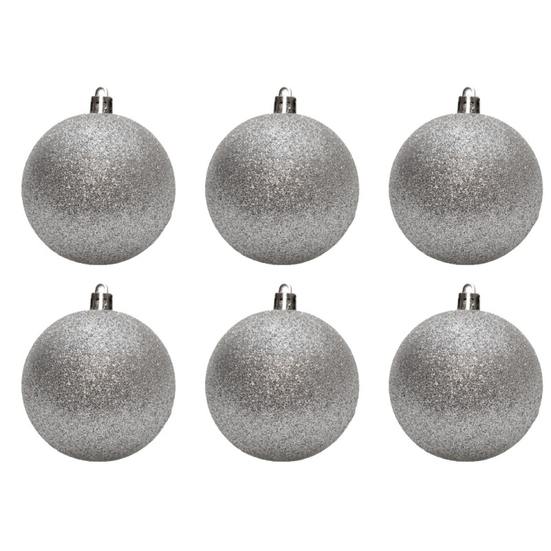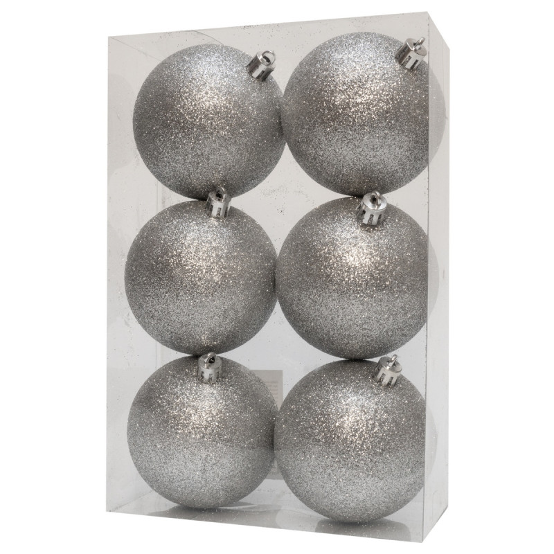 Набір ялинкових іграшок - кулі, 6 шт, D8 см, сріблястий, гліттер, пластик (892319)
